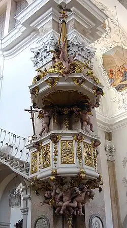 - Um 1721 Schwangau-Waltenhofen, Pfarrkirche St. Maria und Florian: Fassung von Hochaltar und Kanzel