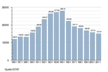 - ↑ Bilancio demografico e popolazione residente per sesso al 31 dicembre 2024. ISTAT. (Bevölkerungsstatistiken des Istituto Nazionale di Statistica, Stand 31. Dezember 2024).