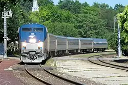 Amtrak-Zug bei der Einfahrt in die Station Kirkwood