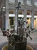 Puppenbrunnen | 1975 | Aachen | an der Ecke Krämerstraße/Hof; Metallpuppen mit beweglichen Gelenken, Puppen symbolisieren Aachener Charakteristika, Bronze |