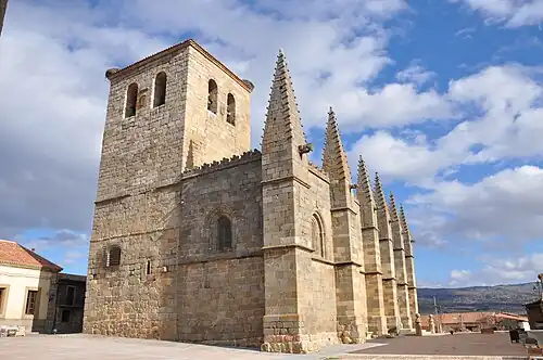 - Die spätgotische Kollegiatkirche San Martín wurde nach der Fertigstellung der Kathedrale von Ávila (1429) begonnen und möglicherweise im Jahr 1513 vollendet; lediglich der blockhaft wirkende Turm dürfte von einem Vorgängerbau stammen. Das Äußere des Bauwerks ist – mit Ausnahme zweier Portale – weitgehend schmucklos gestaltet; das einschiffige Innere überzeugt durch seine Weite von annähernd 17 m und die perfekte Steinbearbeitung, zu der auch eine teilweise in die Wand eingelassene Predigtkanzel gehört. Ungewöhnlich ist das einfache Spitztonnengewölbe aus Ziegelstein mit Gurtbogenunterzügen aus Haustein im Langhaus; der Chorbereich hat dagegen ein für die Zeit übliches Rippengewölbe mit Sternmotiven. Im Jahre 1514 entstand das ursprüngliche Altarretabel mit Szenen aus dem Leben des hl. Martin von Tours; dieses ist verlorengegangen, doch in seinem Nachfolger aus dem Jahr 1701 sind einige der alten Bildtafeln integriert worden.
