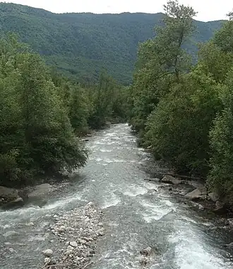 ![]() Der Fluss unterhalb der Brücke Pont des Fayettes | ||