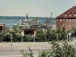 1956 wurde das Marinestützpunktkommando Flensburg-Mürwik in Dienst gestellt.[1] Die Bonte-Kaserne wurde bald darauf als Sitz des Marinestützpunktkommandos genutzt.[6] Das Eingangsportal zur Wasserseite hin wurde in dieser Zeit offenbar zugemauert. Es ist noch heute an der Werksteinumrahmung erkennbar. In der umrahmten zugemauerten Fläche befinden sich seitdem zwei Fenster.[6] Die Bundesmarine nutzte den Marinehafen mit dem Stützpunkt bis zum Ende des Kalten Krieges. Anschließend begann die Konversion des Stützpunktes. 1998 wurde das Marinestützpunktkommando aufgelöst und die Gebäude des Marinehafens anschließend verkauft.[14]