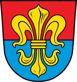 Blasonierung: „Geteilt von Rot und Blau; dem Ganzen aufgelegt eine goldene heraldische Lilie.“[8] |