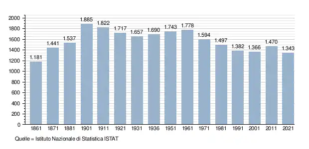- ↑ Bilancio demografico e popolazione residente per sesso al 31 dicembre 2024. ISTAT. (Bevölkerungsstatistiken des Istituto Nazionale di Statistica, Stand 31. Dezember 2024).