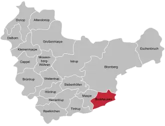 - ↑ Stephanie Reekers: Die Gebietsentwicklung der Kreise und Gemeinden Westfalens 1817–1967. (= Veröffentlichungen des Provinzialinstituts für Westfälische Landes- und Volksforschung des LWL, Reihe 1, Heft 18.). Aschendorff, Münster (Westfalen) 1977, ISBN 3-402-05875-8, S. 219.