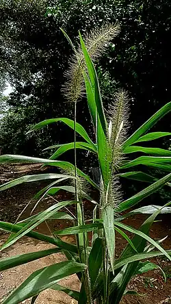 - Kolbenhirse,[17] Italienische Borstenhirse (Setaria italica (L.) P.Beauv.): Sie ist nur aus Kultur bekannt.