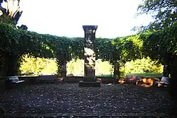 Die Errichtung des Denkmals fand im Jahr 1866 statt.[1] Es wurde inmitten einer aus einer niedrigen Mauer aus Ziegeln und Sandstein gebildeten Exedra aufgestellt. Auf der Mauer wurden auf Pfeilern Rankgitter angebracht. Am Denkmal befand sich die Inschrift: