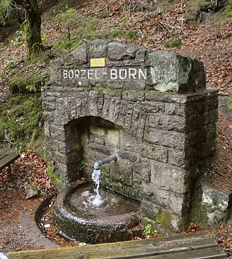 Der Borzelborn wird aus einer Spalten- oder Überlaufquelle gespeist. Sie tritt am Südosthang des Ensebachkopfes aus. Der eigentliche Quellaustritt befindet sich jedoch ca. 60 m weiter oben, am Hugo-Fischer-Weg. An dieser Stelle treffen zwei Gesteinsarten aufeinander, die auf Grund der unterschiedlichen petrografischen Gesteinseigenschaften grundwasserleitend oder -stauend wirken. Oberhalb der Quelle befindet sich Quarzporphyrtuff (rhyolithischer Tuff), der über einen offenen Porenraum verfügt. In diesem zirkuliert das Wasser; als weitere Transportwege für das Grundwasser dienen Spalten und zerklüftete Bereiche. Der wassererfüllte Tuff trifft am Quellaustritt auf einen dichten, nur wenig geklüfteten Quarzporphyr, der damit weit weniger wasserdurchlässig ist. Durch diese wasserstauenden Gesteinseigenschaften wird das Grundwasser zum Austritt gezwungen und die Quelle entsteht.