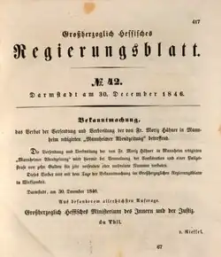 - ↑ Verhandlungen der Zweiten Kammer der Landstände des Großherzogthums Hessen, 1864, S. 63.