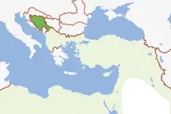 Unter der Herrschaft von Tvrtko I. dehnte sich das Bosnische Königreich im 14. Jahrhundert bis in Gebiete des heutigen Serbiens aus. Die Bewohner des Königreichs, damals als Bošnjanin bezeichnet,[3] gehörten überwiegend der Bosnischen Kirche an, die mit den Lehren der Bogumilen verbunden war.[4] Noch heute existieren Überreste des Bosnischen Königreichs in Serbien, darunter die mittelalterlichen Grabsteine, bekannt als Stećci, die im Land verteilt sind.[5]