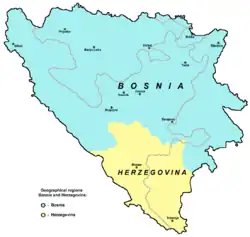 Bosnien (bosnisch Bosna) ist der nördliche und hauptsächliche Landesteil des Staates Bosnien und Herzegowina; es umfasst, bei nicht eindeutig definierter Grenzziehung zur Herzegowina, etwa 80 % des Staatsgebiets. Bosnien bildet heute keine administrative Einheit mehr, sondern ist innerhalb des Staates Bosnien und Herzegowina auf die Republika Srpska, die Föderation Bosnien und Herzegowina sowie den Distrikt Brčko aufgeteilt. Die Einwohner nennt man unabhängig von ihrer ethnischen Zugehörigkeit Bosnier; die Angehörigen der muslimischen Volksgruppe werden dagegen zur Unterscheidung von Kroaten und Serben Bosniaken genannt.