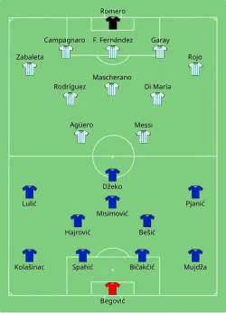 | 2014 (3) | 22 (1 in China, 7 in Deutschland, 2 in England, 2 in Italien, 2 in Kroatien, 1 in Österreich, 5 in der Türkei, 1 in der Ukraine, 1 in Ungarn) | Zvjezdan Misimović (2); Ermin Bičakčić (1), Jasmin Fejzić (0), Vedad Ibišević (3), Sead Kolašinac (2), Sead Kolašinac (2), Sejad Salihović (2), Emir Spahić (3); Asmir Begović (3), Edin Džeko (3); Miralem Pjanić (3), Senad Lulić (2); Tino-Sven Sušić (2), Avdija Vršajević (1); Anel Hadžić (1); Izet Hajrović (2), Senijad Ibričić (0), Haris Medunjanin (2), Edin Višća (2), Ognjen Vranješ (1); Toni Šunjić (2); Muhamed Bešić (3) |