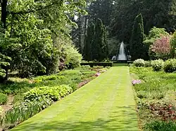 Ahornallee, Rhododendren, Magnolien und Kapelle