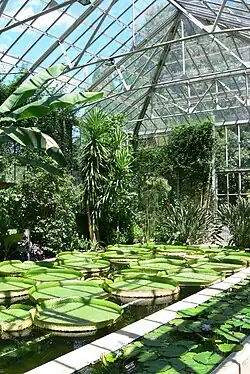 Eine kurze Auffahrt, umgeben von verschiedenen Ahornarten, führt bergauf zu einem Backsteingebäude mit großen Fenstern, das Pflanzen beherbergt, die im Winter vor niedrigen Temperaturen geschützt werden müssen. Im Inneren sticht eine kleine Sammlung fleischfressender Pflanzen und anderer Pflanzen, die in tropischen Klimazonen heimisch sind, hervor: ein neuseeländischer Nadelbaum, eine Rimu-Harzeibe, ein Psidium cattleianum aus Brasilien und eine Pfefferpflanze, die in einem Gewächshaus selten Früchte trägt. Während der Eröffnungssaison wird die Sammlung von Sukkulenten außerhalb des Gewächshauses ausgestellt.