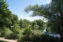 Der Lienauteich ist etwa 9 Meter tief. Sein Name erinnert an den Frankfurter Stadtrat Michael Martin Lienau.[2] Um den Teich herum befinden sich auf den treppenartig gebauten Bereichen Bäume wie Kolorado-Tannen, Kuchenbäume, Blauglockenbäume, Gleditschien, mehrere Weidenarten, Rhododendren, Stauden wie Taglilie, Funkien, Mädchenauge und Gräser wie Lampenputzergras und Chinaschilf.