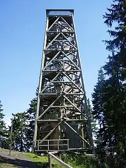 Seit dem Frühjahr 2005 steht auf dem Boubíngipfel ein Aussichtsturm. Der 21 Meter hohe Holzturm kann auf 109 Stufen erstiegen werden. Von der Plattform bietet sich ein weiter Ausblick über den östlichen Böhmerwald.