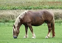 - Der schwerere, als Arbeitspferd im schweren Zug, zum Abkoppeln von Lokomotiven und Beladen von Schiffen, verwendete Dunkerque, der ursprünglich im 19. Jahrhundert entstand und zur Arbeit in Rübenfeldern eingesetzt wurde. Heute wird er meist als Schlachtpferd eingesetzt.[1][2][3][6]