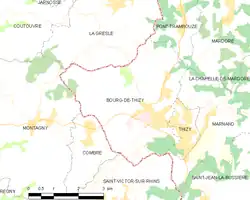 Umgeben wird Bourg-de-Thizy von fünf Nachbargemeinden und von drei Communes déléguées von Thizy-les-Bourgs: