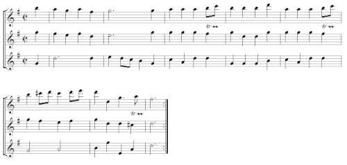 „§ 90. Eine Melodie, die mehr fließendes, glattes, gleitendes und an einander hängendes hat, als die Gavotte, ist