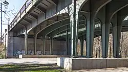 Im Jahr 1898 wurde die Brücke über die Hauptallee durch das Hinzufügen zweier weiterer Träger verbreitert, um Platz für einen Mittelperron zu schaffen. Wann die Brücke ihre heutige Form erhielt, ist nicht bekannt.