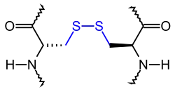 In der Biochemie sind Brücken in Proteinen und Peptiden wichtig, vor allem Disulfidbrücken (Cystin-Brücken), d. h. Schwefelbrücken.