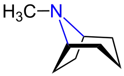 Das bicyclische tertiäre Amin Tropan (N-Methyl-8-aza-bicyclo[3.2.1]octan) und die davon abgeleiteten Derivate, z. B. Cocain, enthalten eine Stickstoffbrücke, durch welche zwei Kohlenstoffatome des Cycloheptan-Gerüsts verknüpft werden.