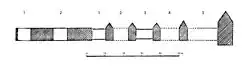- 7,30 – 8,20 – 9 – 10,15 – (11 – 12 – 13 – 14 – 15 – 14) – 13 – 12 – 11 – (10) – 9,30 – 9,10.[10]