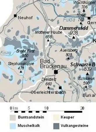 - ↑ Werner Röll: Geographische Landesaufnahme: Die naturräumlichen Einheiten auf Blatt 126 Fulda – Bundesanstalt für Landeskunde, Bad Godesberg 1969 → Online-Karte (PDF; 4 MB).