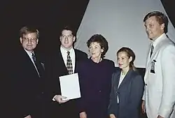 Erteilung der Musterzulassung der SR20 1998. (Von links nach rechts: Alan Klapmeier, Cirrus President Patrick Waddick, Dale Klapmeier)