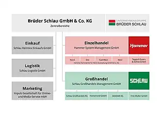 Die Brüder Schlau GmbH & Co. KG ist ein deutscher Handelskonzern mit Schwerpunkt Heimtextilien und Bodenbeläge. Zum Konzern gehören die Fachmarktkette Hammer mit über 180 Filialen in Deutschland (2023) sowie die unter Schlau Großhandel mehr als 60 firmierenden Handwerkermärkte.[4] Etwa 58 Prozent des Umsatzes werden im Einzelhandel erzielt. Der Unternehmenssitz ist die ostwestfälische Stadt Porta Westfalica.[5]