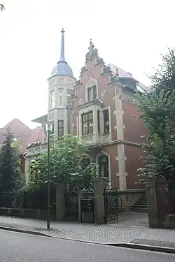 Die Villa wurde 1897 vom Architekten Max Schneck für den Kaufmann H. Wachtel errichtet. In der Gestaltung des Gebäudes finden sich Elemente der Neogotik und Neorenaissance. Die Klinkerfassade wird durch Sandsteinelemente gegliedert. Das reich verzierte Haus verfügt über einen straßenseitigen Turm sowie einen Standerker. Als Zierelemente kommen Maßwerk, Staffelgiebel und Säulen zum Einsatz. Auch der Grundriss ist aufwendig gestaltet.