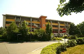 ![]() Zu einem Seniorenheim umgebaute Schule im Wohngebiet Brünlasberg (2010)