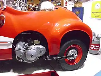 Die Ende 1956 präsentierte französische Avolette mit hinterem Einzelrad, die auf dem 1955 vorgestellten Brütsch Zwerg basiert
