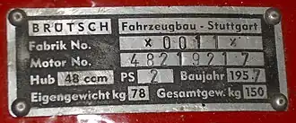 103. Brütsch im Lexikon der Automarken des SWR Fernsehen (Memento des Originals vom 5. Januar 2017 im Internet Archive)  Info: Der Archivlink wurde automatisch eingesetzt und noch nicht geprüft. Bitte prüfe Original- und Archivlink gemäß Anleitung und entferne dann diesen Hinweis.@1@2Vorlage:Webachiv/IABot/www.swr.de, abgerufen am 5. Januar 2017.