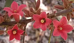 - Brachychiton viscidulus (W.Fitzg.) Guymer: ein kleiner Baum mit roten Blüten und klebrigen Früchten aus Northern Territory und Western Australia.