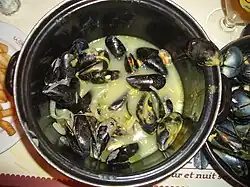 Haufen aus Muschelschalen nach dem Essen von Moules-frites