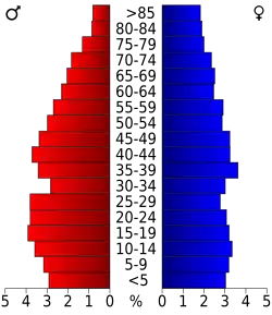 23,6 Prozent der Bevölkerung waren unter 18 Jahre alt, 9,7 Prozent zwischen 18 und 24, 26,5 Prozent zwischen 25 und 44, 22,8 Prozent zwischen 45 und 64 und 17,5 Prozent waren 65 Jahre oder älter. Das Durchschnittsalter betrug 38 Jahre. Auf 100 weibliche kamen statistisch 97,7 männliche Personen und auf 100 Frauen im Alter von 18 Jahren und darüber kamen durchschnittlich 95,8 Männer.