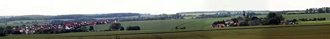 Angrenzende Gemeinden sind Bethenhausen, Großenstein, Hirschfeld und Schwaara im Landkreis Greiz sowie die 1994 nach Gera eingemeindeten Gemeinden Cretzschwitz, Dorna und Söllmnitz.