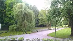 Inmitten eines schmalen Waldstücks entspringt der „Sieben-Teiche-Bach“, der durch die in Kaskaden aufgebauten „Sieben-Teiche“ fließt. Die beiden ersten Teiche sind heute eher sumpfig und lediglich bei Hochwasser als Teiche zu erkennen. Die Teiche drei bis sieben hingegen sind deutlich ausgebildet, über Mönche miteinander verbunden und werden Teich für Teich immer größer. Der letzte und siebte Teich ist der größte und gliedert sich an eine Parkanlage an. Dort gibt es prächtig blühende Rhododendron-Büsche und eine mit Blauregen überdachte schattige Pergola mit Sitzbänken. Außerdem ist ein Stück weiter eine eingezäunte Hundewiese. Nach dieser Hundewiese, im weiter östlichen Teil des Parks, für den man die Glückstädter Straße überqueren muss, gibt es einen Grillplatz, einen Spielplatz und Fitnessgeräte.