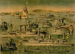 Als Gegengewicht zur griechischen Marinerüstung sahen die Osmanen einen modernen Panzerkreuzer und drei turbinengetriebene Zerstörer als notwendig an. Letzterer Bitte entsprach das Reichsmarineamt mit der Übergabe der in der Ausrüstung befindlichen Torpedoboote S 165 bis S 168, die in Größe und Bewaffnung den zeitgenössischen britischen Zerstörern entsprachen. Sie wurden in der Kaiserlichen Marine durch baugleiche Boote ersetzt und in der Osmanischen Marine unter den Namen Muavenet-i Milliye, Yadigar-i Millet, Numune-i Hamiyet und Gayret-i Vataniye in Dienst gestellt. Der Verkauf eines Panzerkreuzers und speziell der ebenfalls in der Ausrüstung befindlichen Blücher kam jedoch nicht zustande.[42] Der Kreuzer war durch die Indienststellung der ersten britischen Schlachtkreuzer bereits wieder überholt und stellte daher eher einen Ballast für die mit den Flottengesetzen festgeschriebenen Schiffszahlen der Kaiserlichen Marine dar. Allerdings war die Zahl der verfügbaren schweren Aufklärungsstreitkräfte gering. Das Schiff wurde daher in Deutschland gebraucht, wenn auch nur als Notlösung bis zur Indienststellung neuer Schlachtkreuzer.[44] Den anberaumten Kaufpreis von 44 Millionen Mark, der dem Neubaupreis eines Schiffs der Moltke-Klasse entsprach, war das Osmanische Reich nicht zu zahlen bereit, ohne einen entsprechenden Gegenwert dafür zu erhalten. Auch die Forderungen, die Blücher von deutschen Offizieren führen zu lassen und auch alle weiteren Kriegsschiffkäufe in Deutschland zu tätigen, waren für die Osmanen nicht akzeptabel.[42]