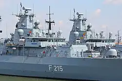 Neben der Brandenburg-Klasse (F123) sind neben anderen Kriegsschiffen auch Fregatten der Sachsen und der Baden-Württemberg-Klasse im Dienst der deutschen Marine.