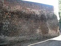 Stadtseitig schloss sich die Stadtmauer an, die in ihren ältesten Teilen aus dem 14. Jahrhundert stammt und aus märkischen Ziegeln gefertigt ist. Die höchsten noch erhaltenen Reste erreichen eine Höhe von drei bis vier Metern und erreichen damit weder die heutige Mauerkrone noch ihre ursprüngliche Höhe von etwa fünf Metern, die sich an den mauerseitigen Turmeinstiegen der Tortürme, bzw. an den Bruchlinien des Anstoßbereiches ablesen lässt. Die Mauer ist in einem Läufer-Läufer-Binder-Verband errichtet und bis zu einem halben Meter stark. Die barocken Teile der Mauer sind an ihrer markanten Läufer-Binder-Struktur gut erkennbar. Auch das Format der Ziegelsteine wechselte im Allgemeinen hin zu kleineren Steinen.