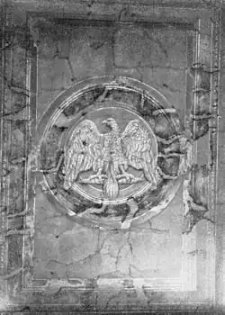 - ein Adler mit Ölkranz, als Zeichen für den Frieden.