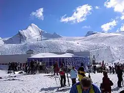 Am 11. November 2004 wurde die Gedenkstätte für die Opfer unter der Teilnahme von rund 300 Angehörigen offiziell eingeweiht.[35] Die langgezogenen Quader aus Sichtbeton und Glasstelen befinden sich gegenüber der Talstation der Gletscherbahnen. Die einzelnen Glasschlitze sind jeweils einer bestimmten Person gewidmet. Die Verschiedenfarbigkeit der Glasstreifen symbolisiert das Geburtsjahr der Todesopfer nach dem chinesischen Horoskop.[36]