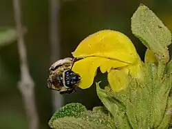 Die zwittrigen Blüten sind zygomorph und fünfzählig mit doppelter Blütenhülle. Die fünf Kelchblätter sind röhrig bis röhrig-glockigförmig verwachsen.[1] Der Kelch besitzt fünf bis zehn Nerven und endet in fünf gleichen oder ungleichen[2] Kelchzähnen. Die gelbe, rosa-, purpurfarbene[2] oder weiße[1] Krone ist zygomorph und deutlich zweilippig. Die Oberlippe ist helmförmig gewölbt und ausgerandet. Die Unterlippe ist abstehend, dreilappig mit einem großen Mittellappen und zwei kleinen, stumpfen Seitenlappen. Von den vier Staubblättern sind zwei kürzer, zwei länger.[1] Sie tragen unterhalb der Mitte ein abwärts gerichtetes Zähnchen. Sie sind kürzer als die Kronröhre oder überragen sie, ragen dabei jedoch nicht über die Oberlippe hinaus. Alle vier Staubblätter sind fruchtbar. Die Narbenäste sind ungleich.