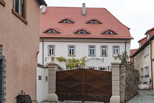 - ↑ Günther Schmitt: Häuserchronik der Stadt Volkach als Spiegel des Bürgertums. Vom Ende des 17. Jahrhunderts bis heute (= Volkacher Hefte Bd. 19). Volkach 2017. S. 204.