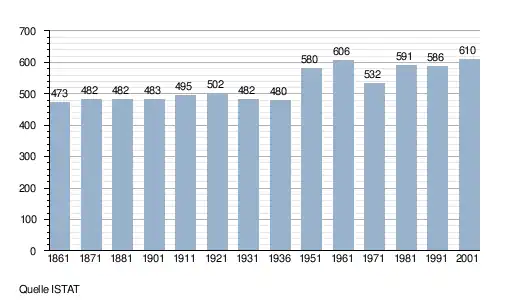 - ↑ Bilancio demografico e popolazione residente per sesso al 31 dicembre 2024. ISTAT. (Bevölkerungsstatistiken des Istituto Nazionale di Statistica, Stand 31. Dezember 2024).
