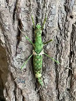 - ↑ Sarah Bank, Thomas R. Buckley, Thies H. Büscher, Joachim Bresseel, Jérôme Constant, Mayk de Haan, Daniel Dittmar, Holger Dräger, Rafhia S. Kahar, Albert Kang, Bruno Kneubühler, Shelley Langton-Myers, Sven Bradler: Reconstructing the nonadaptive radiation of an ancient lineage of ground-dwelling stick insects (Phasmatodea: Heteropterygidae), Systematic Entomology (2021), doi:10.1111/syen.12472