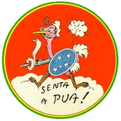 Die brasilianische Staffel hatte ein eigenes Abzeichen. Es zeigt in einer grün-gelben (den Nationalfarben Brasiliens) Umrandung einen Strauß mit auf dem Schild aufgemalten Himmel und dem Kreuz des Südens. Im Hintergrund explodieren Flakgeschosse, die rechte Hand symbolisiert die Feuerkraft der Thunderbolt-Flugzeuge, der rote Fond das vergossene Blut der Piloten. Darunter das Motto „Senta a Pua“ – sinngemäß „Schlage entschlossen zu und du wirst den Feind vernichten.“